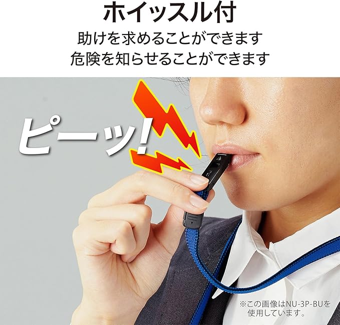 ストラップには、もしもの時に安心なホイッスル付きです。