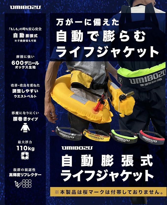 Umibozu(ウミボウズ) 自動膨張式 ライフジャケット 救命胴衣 釣り 腰巻き ベルト 大人用 自動/手動2Way