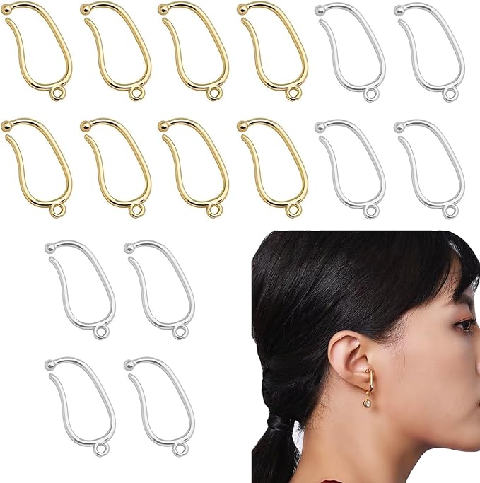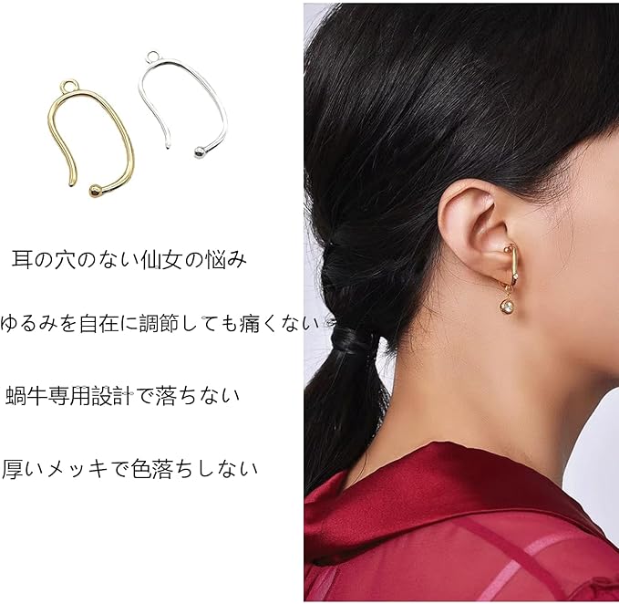 【製品規格】イヤークリップ部品サイズ:12*23 mm、色:明るい銀メッキ、真金メッキ8個、銀色8個入り、ノンホールピアス パーツ数量:(16個入り)。  【高品質材質】このイヤークリップ部品は電気めっき真金/掛めっきと普通のアクセサリー技術を用いて加工され、独特の光沢があり、ノンホールピアス パーツ長持ちし、変色しにく。  【着脱が簡単】軟骨に引っ掛けるだけで装着や取り外しができ、とても魅力的です。耳掛けパーツは他のノンホールピアス パーツングやイヤリングとは異なり、ユニークでスタイリッシュなデザインで、いつもとは違う魅力を演出し、長時間つけても痛くないようにしています。  【DIYイヤリング制作】パーツ 耳に丸い穴があり、お好みのペンダントとチェーンを組み合わせて組み合わせることができ、耳掛けチェーンに掛けたり、仕事でイヤリングを持っていない人に穴を開けない学生におすすめしたりすることができます。  【幅広い用途】シンプルな金属アレルギーに適したイヤーカフ パーツ、フォーマルシーンやカジュアルなど、さまざまなスタイルに適しており、シンプルでありながら華やかで、長く着用することができます。大切な記念日や誕生日プレゼント、自分へのご褒美、女性へのプレゼント、クリスマスプレゼント、母の日などの記念におすすめのレディースギフト。 もしあなたが私たちのイヤーカフ パーツに何か疑問があれば、いつでも私たちに連絡してください。私たちは24時間以内にあなたに返事します。