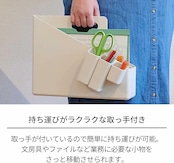 書類やデスク周り文具などを、ひとまとめにして持ち運びできる取っ手付きのファイルボックスです。また横置きと縦置きの2種類の使用方法が可能なので用途によってお選びいただけます。