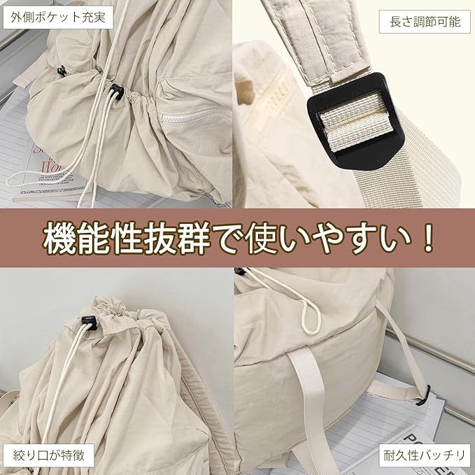 ナイロン素材を使用しているので、耐久性もバッチリです!大容量収納可能なので、通勤通学、 旅行やレジャーシーンはもちろん、 子育て中のパパママ兼用で使えるマザーズバッグにも◎また、とても軽くてコンパクトに収納できるので、バッグの中に折りたたんで収納しておくのも便利です!