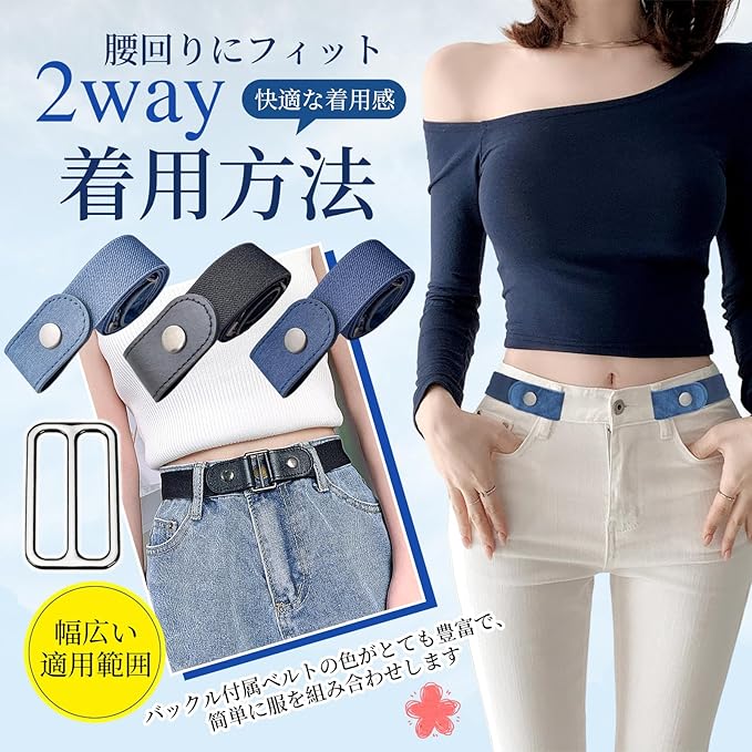 [限定商品] ベルト レディース ゴム メンズ 2個 2つの方法 簡単 穴なし ウエストベルト ユニセックス バックルなしベルト おしゃれな カジュアル トイレに行くのに便利 圧迫感がない サイズ調整可能