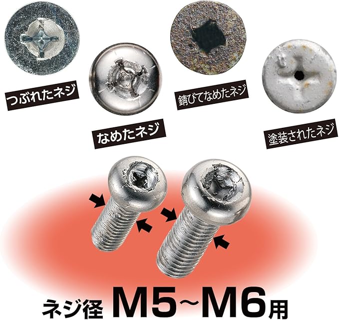 ●破損が多いネジ部は、ネジはずしに最適な先端角度でネジ山に食い込みやすく、耐久性も高い