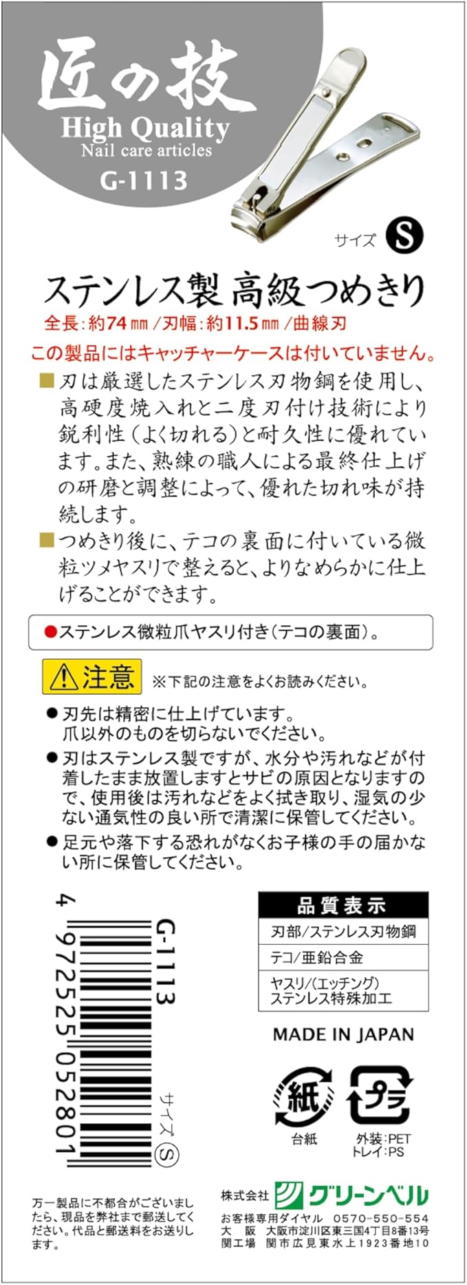 GREEN BELL 匠の技 ステンレス製 高級つめきり Sサイズ G-1113