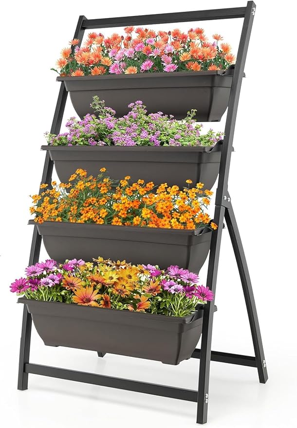 COSTWAY プランター 4段式 隆起したガーデンベッド 排水穴付き 垂直ガーデン自立式高架プランター 野菜栽培 果物栽培 自家栽培 家庭菜園 植木鉢 ガーデニング用品 園芸用品 植物育成 大容量 おしゃれ 頑丈