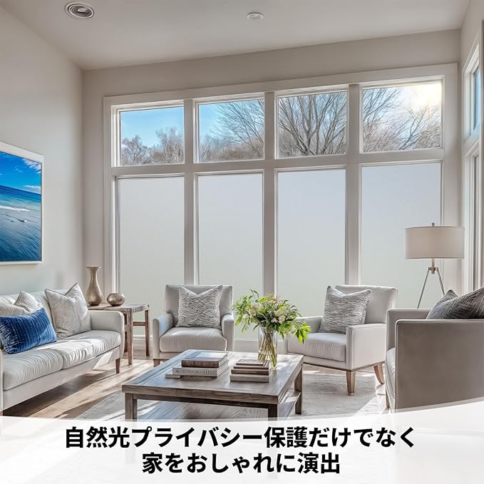 【目隠し / プライバシー対策】20cm以上離れていれば、天気や昼夜を問わず、室内を見えにくくする窓ガラス目隠しフィルム、かつ、採光性が抜群。無カーテン化で部屋がすっきりして広くになります。家庭の窓、ガラス引き戸、オフィス、会議室、浴室、フランス窓などに幅広く適しています。