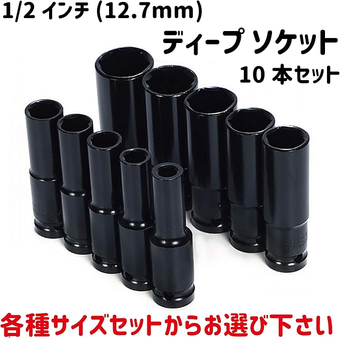 12.7mm 1/2インチ ディープ ソケット 10本セット ラチェット インパクト 用
