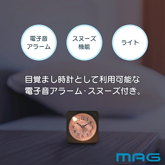 MAG(マグ) 目覚まし時計 置き時計 小型 小さい アナログ かわいい おしゃれ インテリア 静音 連続秒針 電子音 アラーム スヌーズ ライト ナチュラル ミニモク T-736 N-Z ノア精密