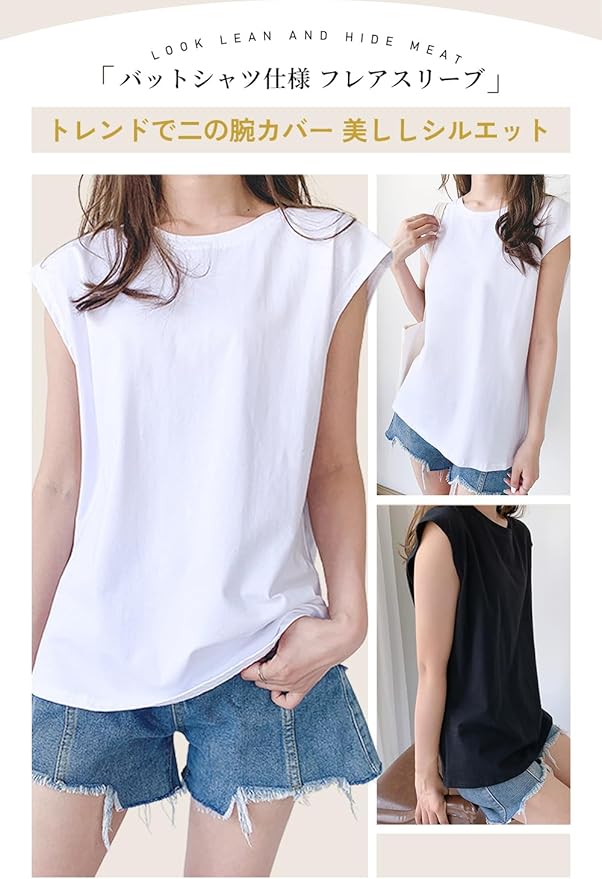 [Mmlnrc] Tシャツ レディース ノースリーブ タンクトップ クルーネック 速乾Tシャツ ゆったり 着痩せ効果 トップス 夏服 無地 フレンチスリーブ カットソー 重ね着 丸首 柔らか おしゃれ 可愛い カジュアル 通勤 デート 夏 ゆるT