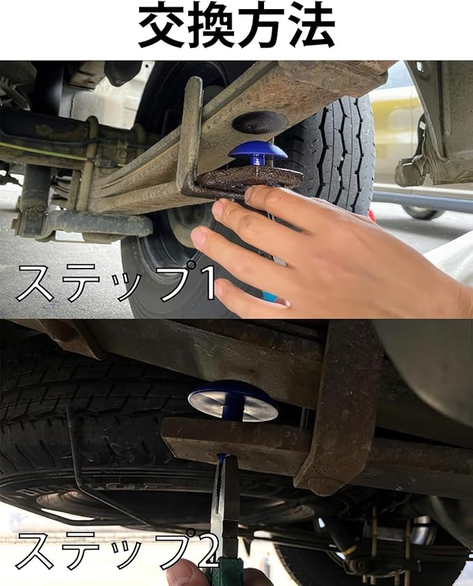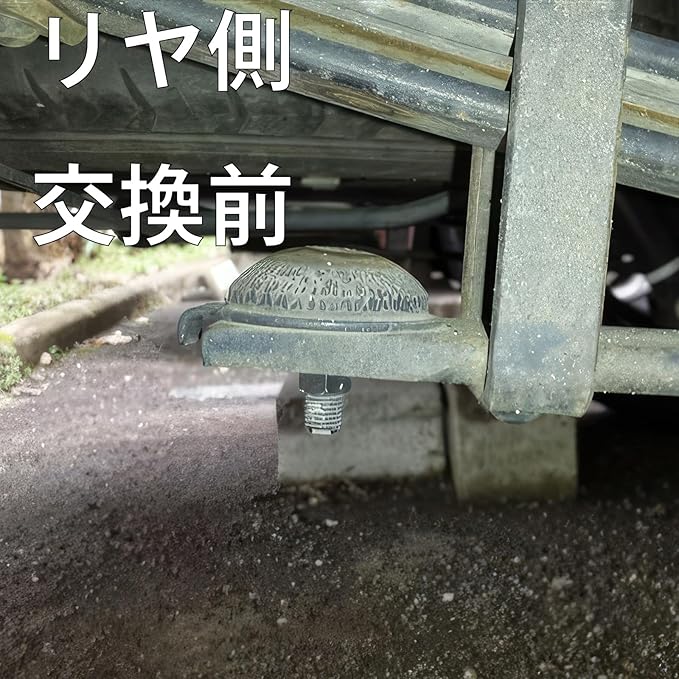 純正をネジで外して、ハイトダウンサポーターの方は穴に差し込むだけで、簡単に交換できます、片側で2個、左右で4個交換の必要です。