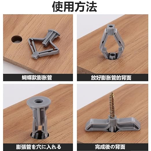 2;【使いやすい】壁に穴を開けるだけで、中空壁アンカーを穴に埋め込め、次にネジをドライバーでノック。ただし、穴の深さと直径はエンジニア製品とアンカー寸法に対応する必要があります。8mm/10mmのドリルビットを推奨します。---ボードアンカー