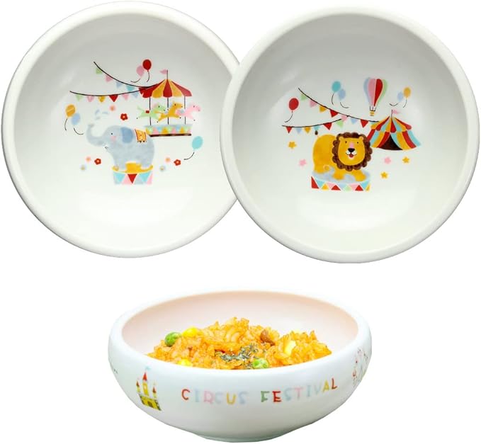 こだわり食器と雑貨のお店irodori 子供食器 2柄セット どうぶつサーカス すくい易いボウル 径13.8cm 約450ml ライオン&ゾウ ベビーセット 食育 キッズ 子ども 出産祝い 動物 介護 幼児 リハビリ
