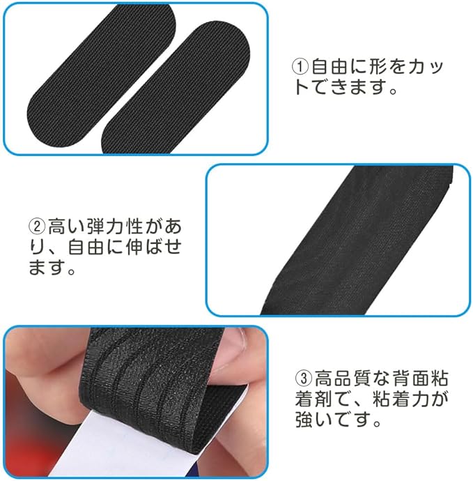 【強力な粘着力】超強粘着剤を使用しており、剥がれにくく、耐久性と耐水性に優れています。汗や水にも強く、過酷なトレーニングやシャワー時でも安心して使用できます。