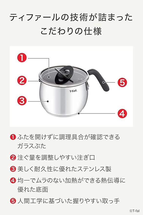 日本正規品は、品質表示・取扱説明書が印刷されたティファールの個装箱で梱包されています
