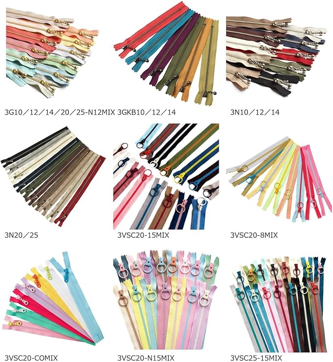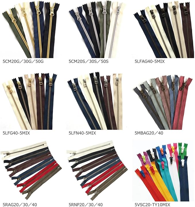 Y.K.K ポーチ用カラフルファスナー 5色セット 10cm ミルキー 3CF10-COMIX-2