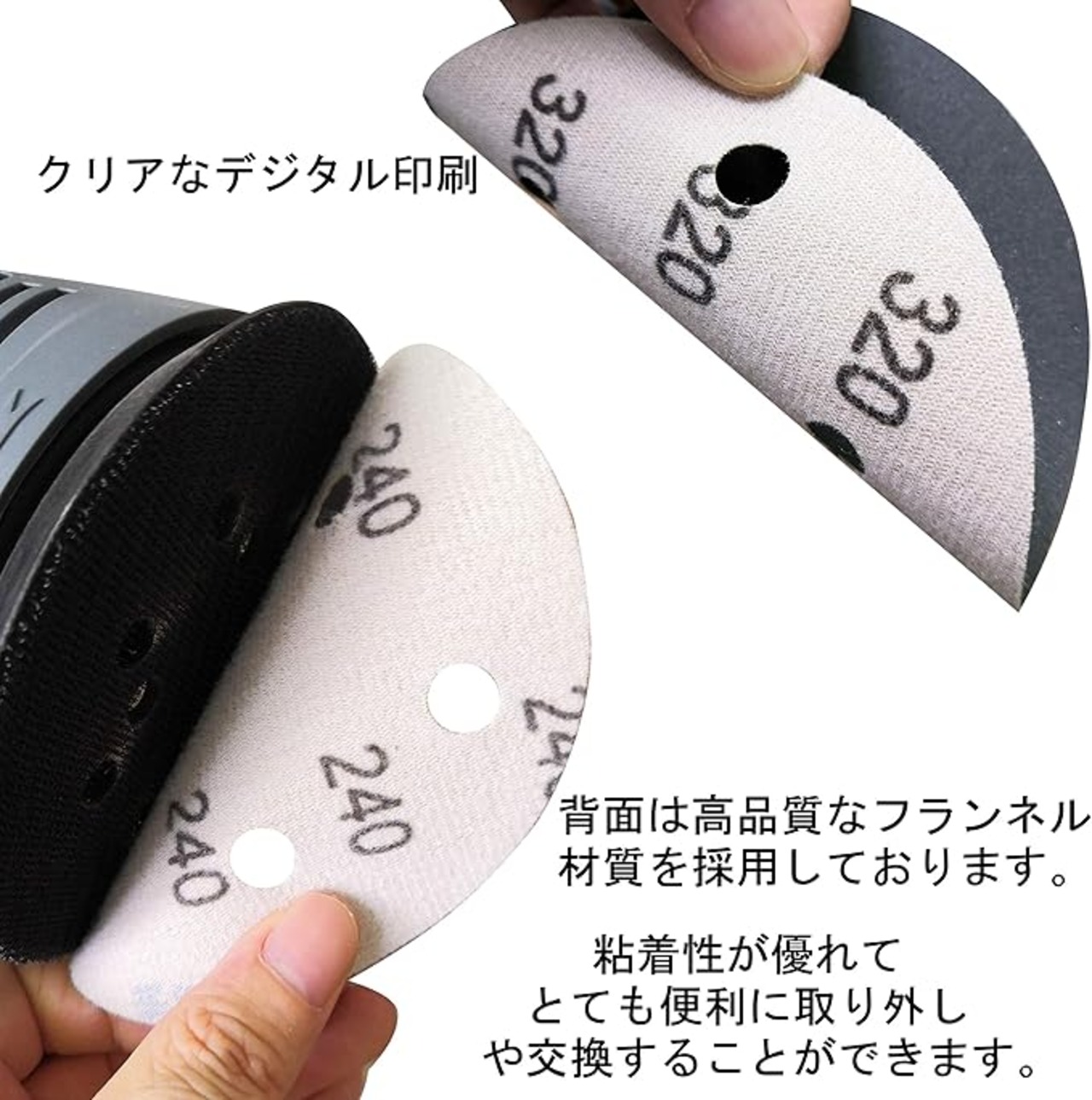 【取り換えが簡単】 直径125mm/6穴タイプのペーパーに対応。粘着性が優れて、とても便利に取り外しや交換することができます。異なる研削ニーズに従って砂の異なるカテゴリーが素早く変えることができ、操作が簡単です。