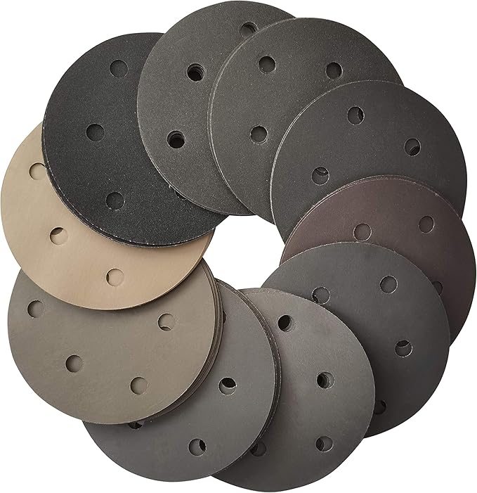 Aewio 50枚 125mm耐水 サンドペーパー #240 - #3000 丸型 6穴あき サンダー用 サンディングディスク 240 320 400 600 800 1000 1200 1500 2000 3000 各5枚 (50枚セット 10タイプ 各5枚 #240-#3000)