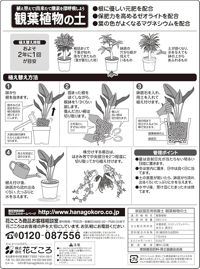 特長:葉の色が濃くなるマグネシウム配合、元肥入りだから植え替えカンタン