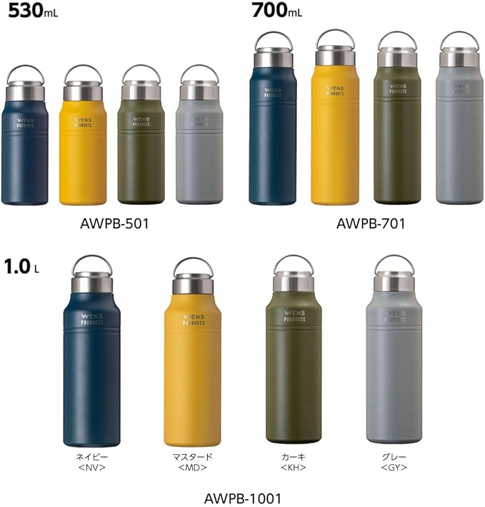アトラス 水筒 1000ml 1.0リットル 1.0L 保冷 保温 真空断熱 ステンレス マグボトル 軽量 直飲み 洗いやすい アウトドア 白湯 WENS ウェンズ マスタード AWPB-1001MD