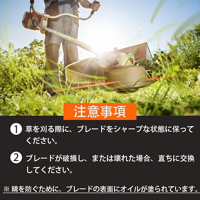 【長持ちする切れ味】特殊加工により、繰り返し使用しても切れ味が長持ち。効率的な草刈りを実現し、作業時間を短縮します。草刈り機 替え刃としての品質と耐久性が自慢です。