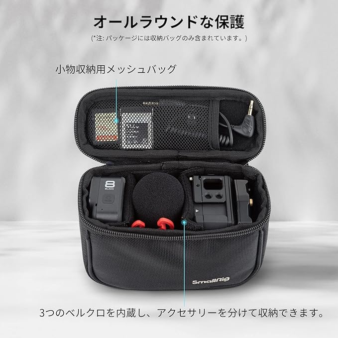 【大容量】内蔵の通気性メッシュは、独立したストレージとセキュリティを提供し、USBケーブル用のストレージも追加します。SmallRigフォローフォーカス3010、アクションカメラ、コンパクトカメラのほか、マイク、LEDライト、小型Vポートバッテリーなどを収納することが可能です。