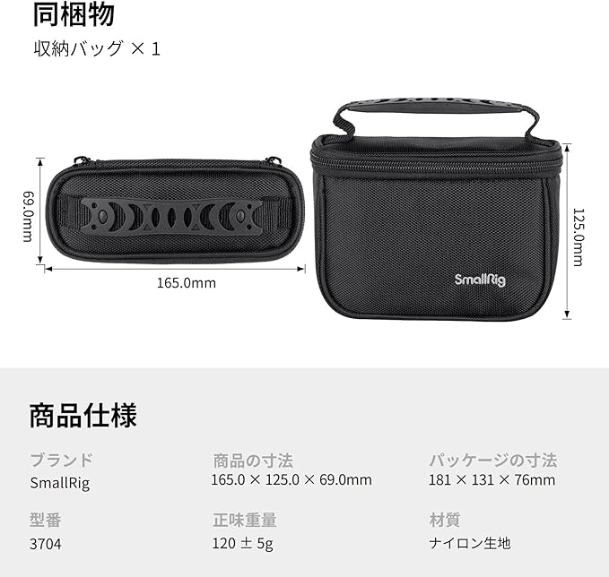 SMALLRIG カメラケース カメラ収納バッグ軽量 一眼レフ カメラバッグ 通気性メッシュ付き ナイロンハンドバッグ収納ボックス ダブルジップ(ブラック) - 3704