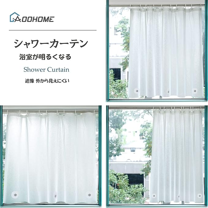 AooHome 浴室窓カーテン シャワーカーテン 小窓 60cm丈 防寒 保温 クリア 冬夏 EVA材質 目隠し 防水 ミニ 短め 防カビ ユニットバス お風呂場 カフェカーテン すりガラス柄 リング付き 取付簡単