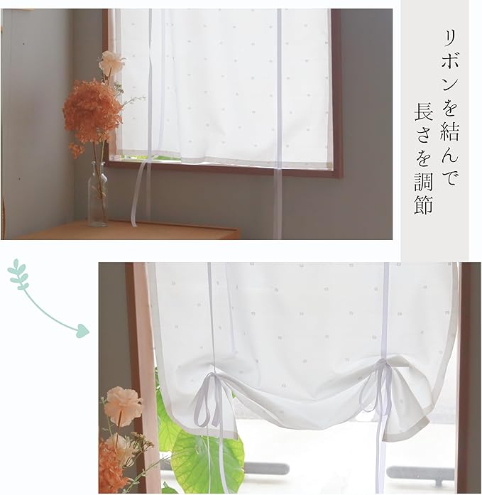 【限定商品】カーテン研究所≪遮熱・遮像ドットリボンアップ小窓カーテン ホワイト≫ 幅70cm x丈120cm 1枚入り 水玉 カフェカーテン のれん 目隠し 間仕切り 節電対策 夜でも外から見えにくい UVカット 断熱 保温 洗える 洗濯機対応 省エネ ベーシック レース シンプル