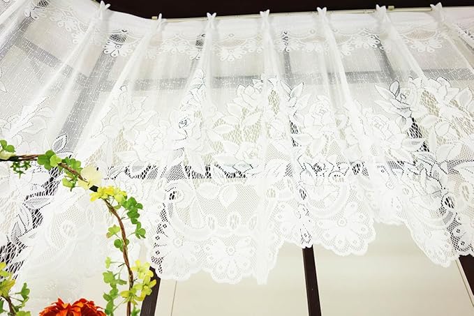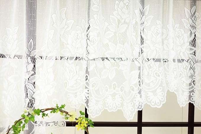 かーてん屋さんアウトレット 出窓用カーテン おしゃれな花柄 [ローズ] 幅195cm 丈85cm 1枚 ホワイト