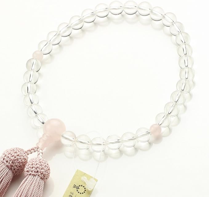 念珠ドットコム 数珠 女性用 本水晶 ローズクォーツ 約8ミリ 正絹房 数珠袋付き すべての宗派で使える 8mm 略式数珠 京念珠