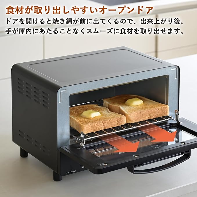 [山善] トースター オーブントースター 一人暮らし 二人暮らし トースト 2枚焼き 山型パン対応 1000W タイマー30分 温度調節機能付き 受け皿付き ブラック YTRB-C100(B)