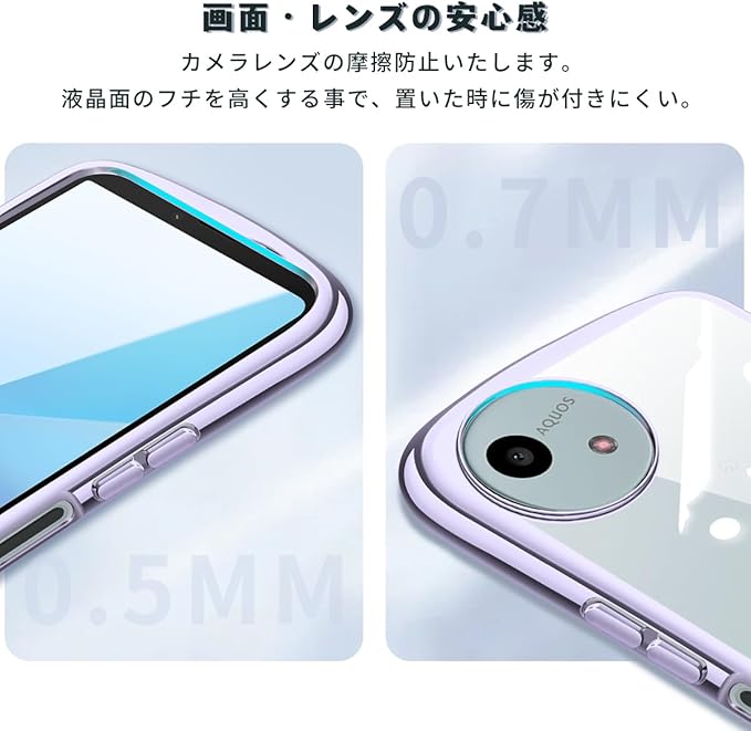 【 全面保护】レーム部分とカメラのフチを高く設計し。平らな場所においても、液晶画面とカメラレンズに直接触れることがなく。