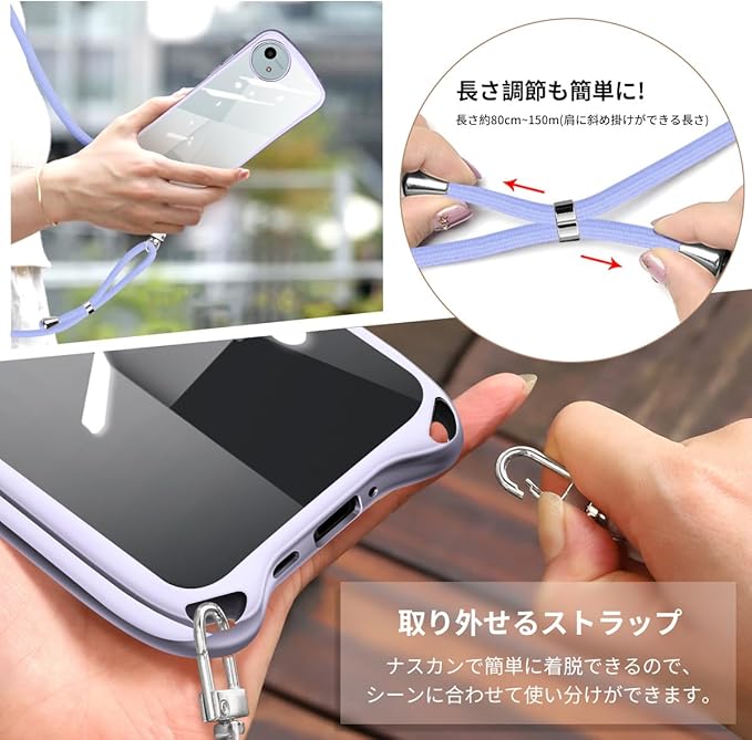 【実用性高い・人気オシャレケース】ショルダーストラップ付き、取り付けや長さ調整が非常に簡単。特にポケットのない服が多いので、外出時に肩にかけるととても便利です。ショルダーストラップは取り外し可能なので、それを使わなくても簡易的なスマホケースとして使用することができます。外出、登山、買い物、自撮り、電車内の時など日常生活からできるスマホ紛失・落下防止できるスマホネックストラップリングで両手を自由にし楽な日常ができます。