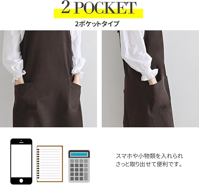 【5つの魅力】■安定感のある太めの肩紐:安定した着心地でユニセックスに活躍■着脱しやすいバッククロス:さっとかぶることができ忙しい方にもオススメ■ポケット2か所:スマホや小物を入れてさっと取り出せます■ゆったり着れる:紐で結ばないタイプなのでゆったりと着用できます■こだわり抜いた素材:インド綿100%使用。洗い替えに何枚あっても便利で、プレゼントにもオススメです