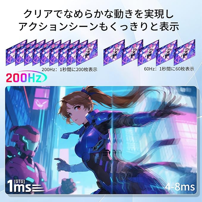 超高速200Hz でeスポーツを制す: 競技レベルのプレイに最適化された180ネイティブリフレッシュレートを搭載。1ms(MPRT)の超低遅延とFreeSync/G-Sync互換技術により、高速戦闘でも画面チラつき・撕裂ゼロの滑らかさを実現。敵の一瞬の動きも逃さず、反応速度で圧倒的なアドバンテージを発揮します。
