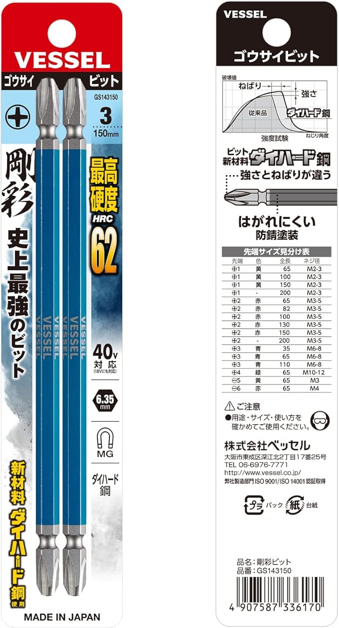 ベッセル(VESSEL) 40V対応 両頭プラス 剛彩ビット +3 150 2本組 GS143150