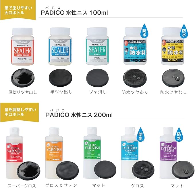 粘土をはじめ紙・布・木・金属など多くの素材にそのままご使用いただける、水性ニスです。