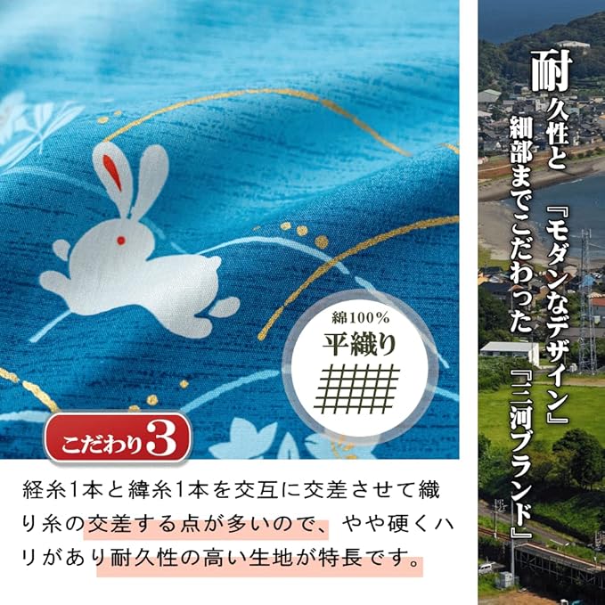 ✅綿100%の生地に縁起の良い柄をプリントしております。✅うさぎは月の使いとも言われ、「ツキを呼ぶ」縁起の良い動物と信じられています。 うさぎはその動きから跳躍、飛躍を表し、子沢山は豊穣・子孫繁栄の象徴とされ、長い耳には福を集めると言われています。 物事がとんとん拍子に進むと伝わる縁起の良い柄です。