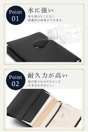 【デザイン】柔らかく手にフィットする合皮レザーを使用しています。装飾がなくシックなカラー展開です。リボン素材のしおり付きです。従来のレザータイプのブックカバーはしおりも同素材でできており、厚みから本に跡がついてしまいます。当商品は本に影響の無いリボン素材のため本に影響与えません。