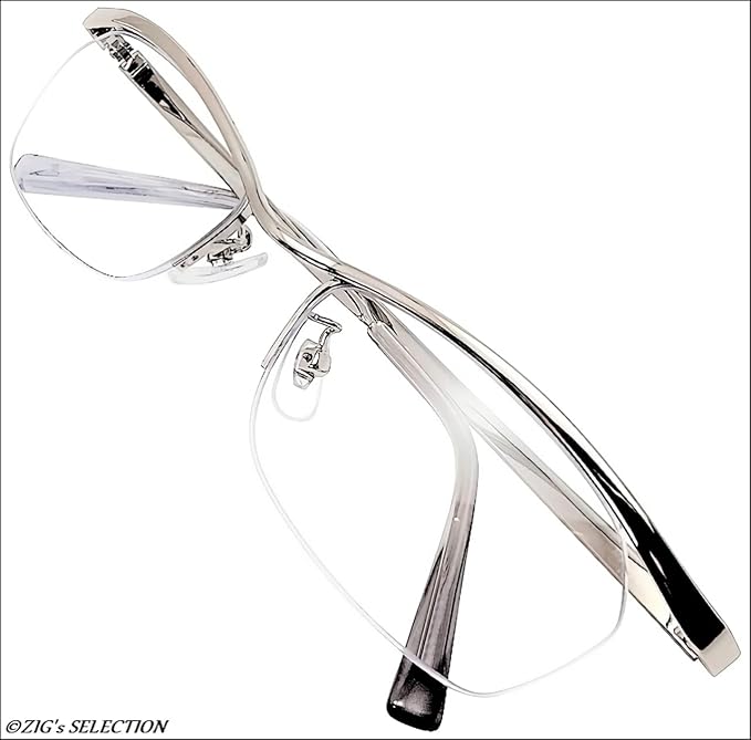 [伊達メガネ] [ZIGs] お洒落に目を守る 紫外線 飛沫 花粉 イメチェン サングラス UVカット クリア メタル ハーフリム メンズ レディース (gldm00)