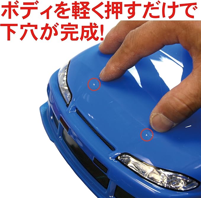 マーカー先端は鋭く尖っている為、ボディを押さえるだけでボディポストの下穴加工が簡単に行えます。