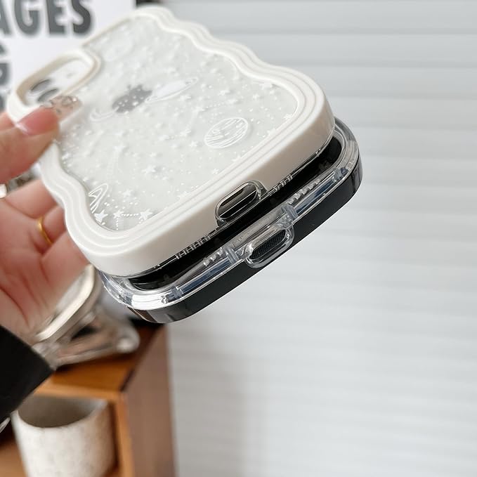 ✨【独特なデザイン】かわいいプラネット/星/月の装飾がスマホをより魅力的にします!わずかに盛り上がった模様が感じられ、テスト後に剥がすのは容易ではない。波型のフレームが快適なグリップを提供。クリアな背面は、携帯電話本来の美しさを表現しています。ユニークなパターンとキャンディカラーのボーダーは、色合いがマッチしており、審美的な外観を引き立てています。女の子と女性への素敵な贈り物。