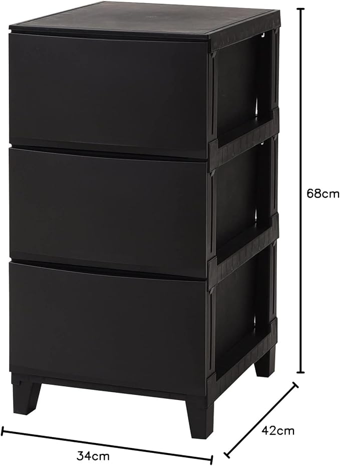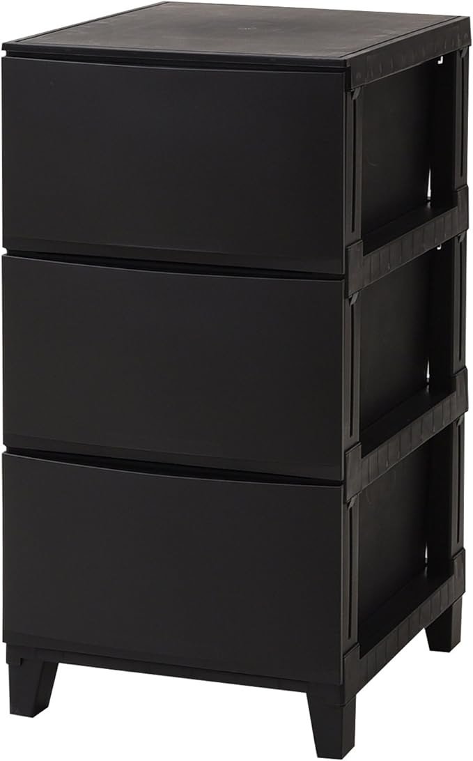 サンカ(Sanka) チェスト 3段 【日本製】 スリム 幅34 奥行42 高さ68cm クローゼット収納 すべり止めつき ネット限定カラー(ブラック) 組立かんたんRSD-S343YABK