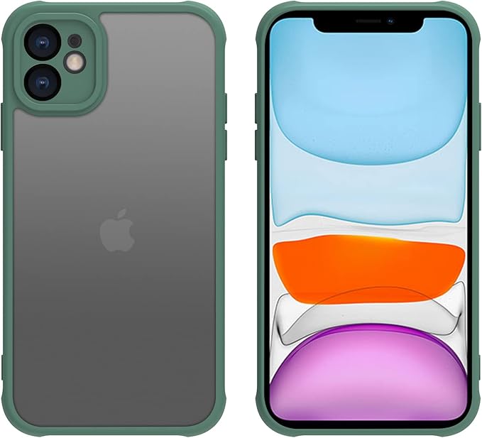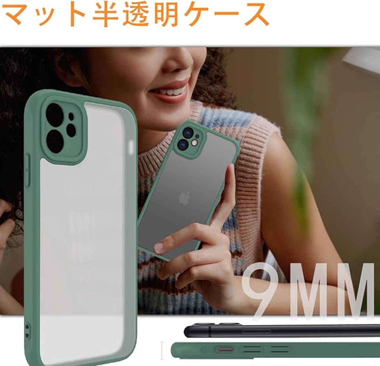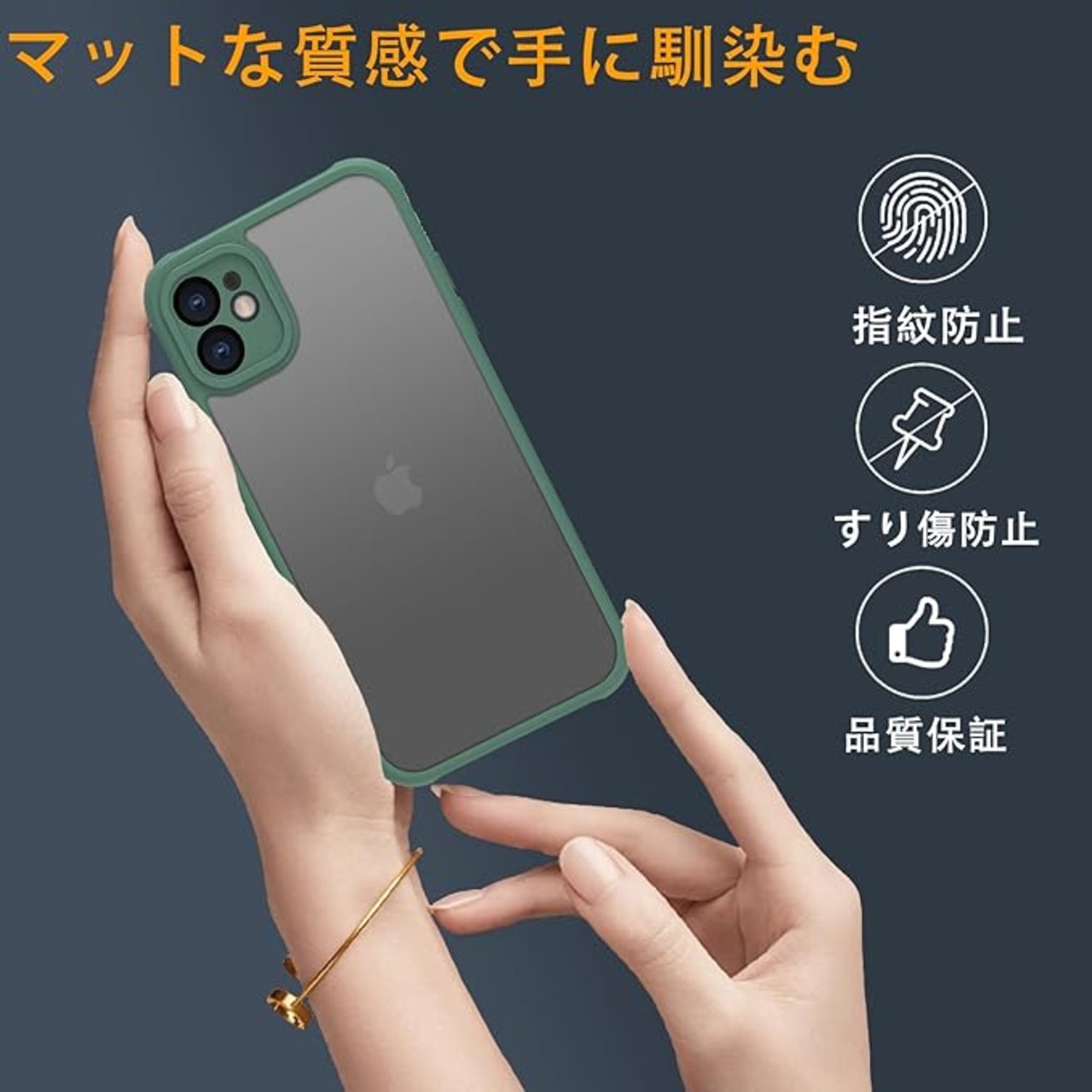 iPhone 11 ケース 背面マット 半透明 耐衝撃 iPhone 11 ケース 指紋防止 アイフォン 11 カバー 米軍MIL規格 iPhone 11 用 ケース カバー 黄変防止 スマホケース iphone 11 6.1インチ 対応 PinLiSheng(インクグリーン, iPhone11)