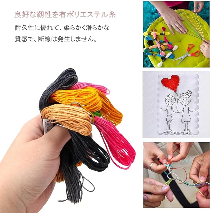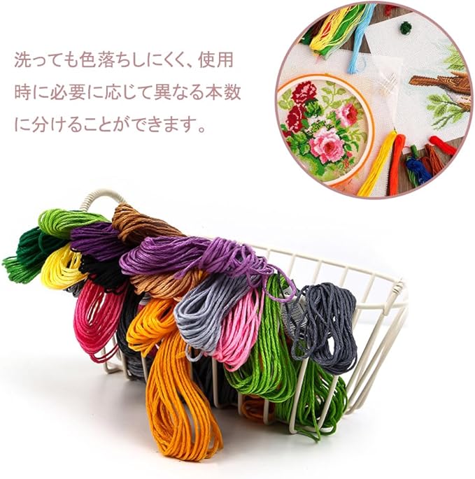 3、さまざまな色:糸色種類が多いです,数量も多い,色の組み合わせを楽しめ,素材の魅力を生かせる糸が見つかります,DIYの刺繍や縫製であなたの日常のニーズに十分です。