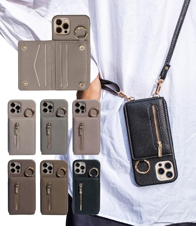 shinyle スマホケース ショルダー タイプ iphone15 pro スマホ ショルダー 携帯ケース ストラップ付き 背面カード収納 リング付き マグネットホック 背面手帳型 ケース レザー ショルダー