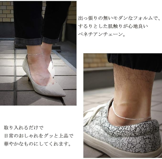 [新宿銀の蔵] ベネチアンチェーン シルバー 925 アンクレット 長さ21~27cm (21~27cm) シンプル 足首 銀 金 ゴールド K24 24金 メンズ レディース