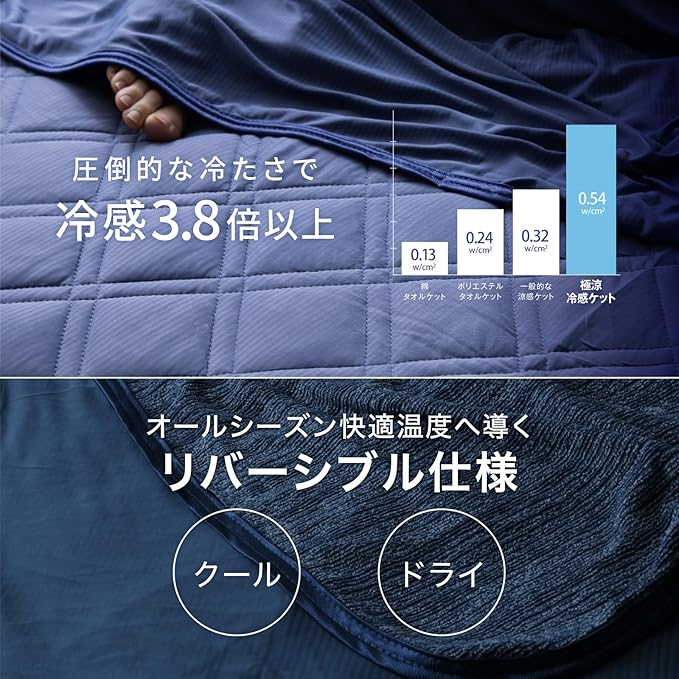 ✅【超冷感Q-MAX0.54!ひんやり感3.8倍以上】HOME COCCIの冷感タオルケットにはQ-MAX0.54という、接触冷感を誇る素材を使用しています。Q-MAX0.2以上であれば、接触冷感素材の基準を満たしていますが、【強冷タオルケット】はなんと業界最高峰「0.54」という数値です。暑がりの方に是非おすすめです。