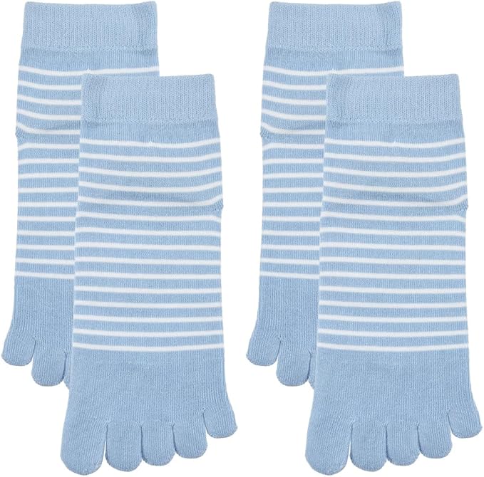[フクスケ] MURENO(ムレノ) ボーダー 5本指 ショート丈 ソックス 2足組 靴下 消臭糸使用 福助 蒸れにくい レディース 3160Q02N