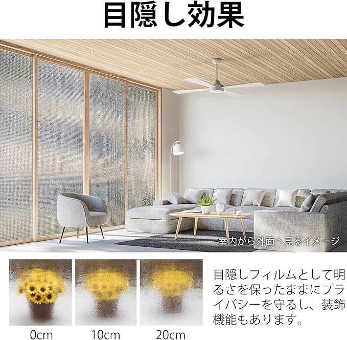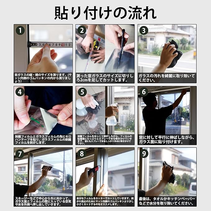 ※直射日光を多く受ける ワイヤー・網入りガラス、複層(ペア)ガラス等に射熱吸収率の高いフィルムを貼ると熱割れが起こる可能性がございます。 ※本商品は室内側貼り専用タイプです。室内側ガラスが凹凸やザラザラと感じるガラスは施工できません。